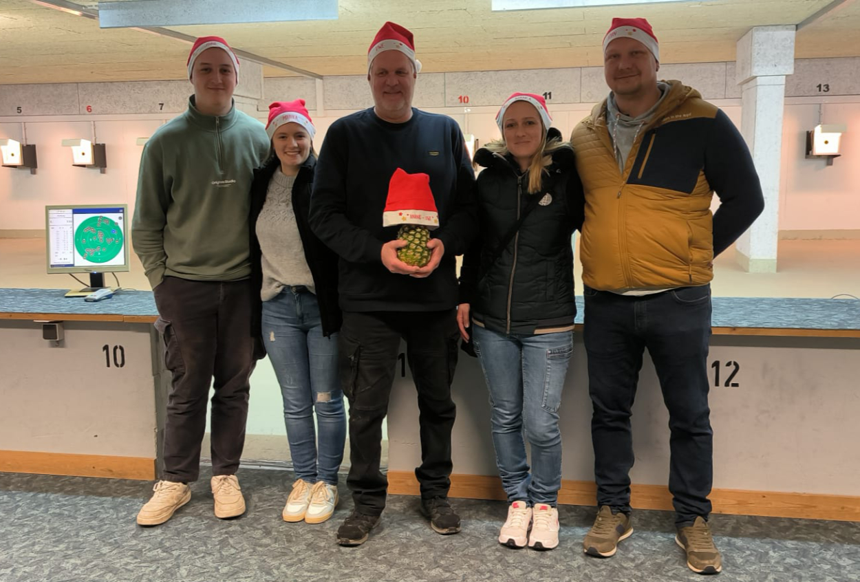 Am vergangenen Wochenende standen in der Kreisliga in zwei Disziplinen Wettkämpfe an. Für unsere Luftpistolenmannschaft 3 ging es am Nikolaustag auswärts gegen die SGes Esslingen. Leider konnten wir trotz tatkräftiger Unterstützung des Mannschaftsmaskottchens keinen Sieg erringen und unterlagen mit 1341:1319 Ringen.